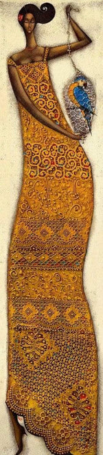 Kunstdruk Ira Tsantekidou - Lady with Parrot 32x128cm