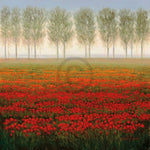 Morning Mist is de naam van deze mooie kunstreproductie. Sierlijke naaldbomen op een mistige achtergrond en op de voorgrond kleurige bloemen. Deze kunstreproductie is van Park en heeft een afmeting van 68 x 68 centimeter.